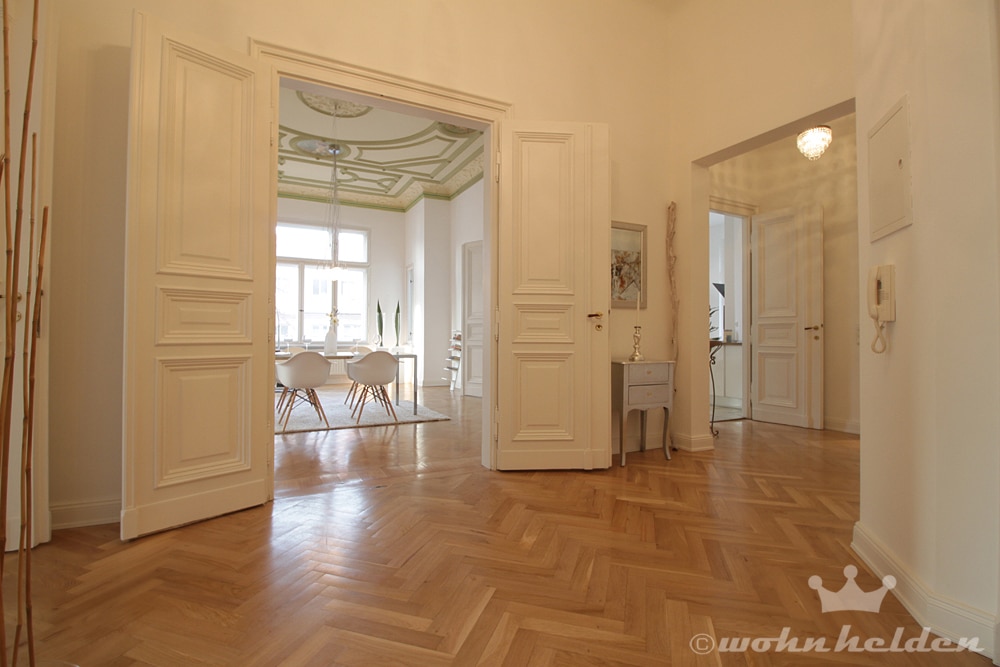 Sanierte Gründerzeit-Villa wurde für den optimalen Verkauf hergerichtet. Nach der Sanierung einer Eigentumswohnung, in einem prächtigen Gründerzeit-Altbau, beauftragte der Bauträger die wohnhelden mit der Gestaltung des Homestagings. Der Eigentümer nutzt diese Maßnahme zur besseren Vermarktung des Gebäudekomplexes. Bisher wurden 2 Wohnungen für die jeweils unterschiedlichen Zielgruppen hergerichtet.