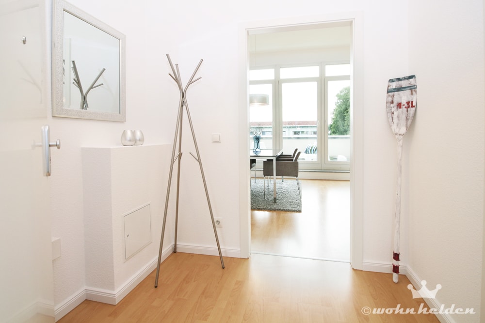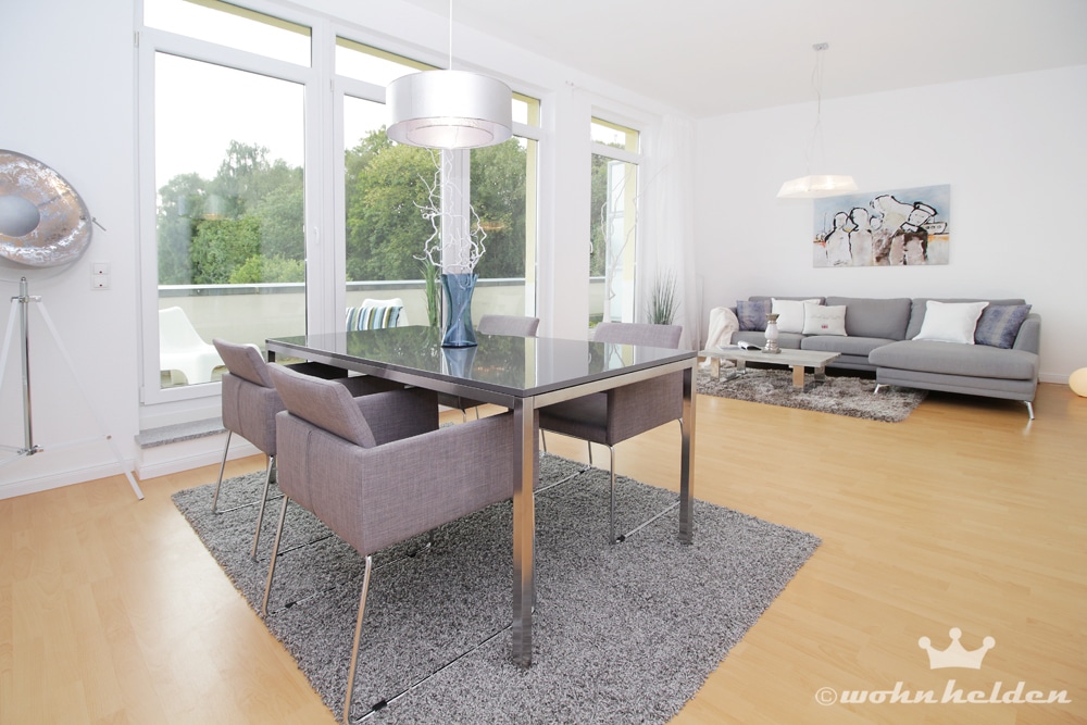 Die Musterwohnung am Hamburger Stadtrand zeigt sich durch die wohnhelden optimal präsentiert. Der individuelle Grundriss dieser Eigentumswohnung war eine kleine Herausforderung für unser Home-Staging-Team. Wir haben diese Aufgabe für eine Münchner Projektentwicklungsgesellschaft mit großer Leidenschaft gemeistert. Eine einladende Wohnsituation wurde geschaffen, die auch für intensive Gespräche des Vertriebes genutzt werden kann.